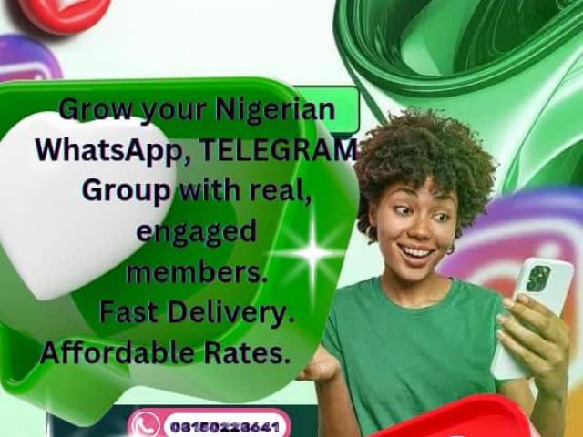 MAXIMIZE your reach. We professionally inject your group with verified, active, and engaging members, exclusively sourced from the Nigerian market. From core business objectives to community building and premium entertainment, we provide a strategic membership upgrade.